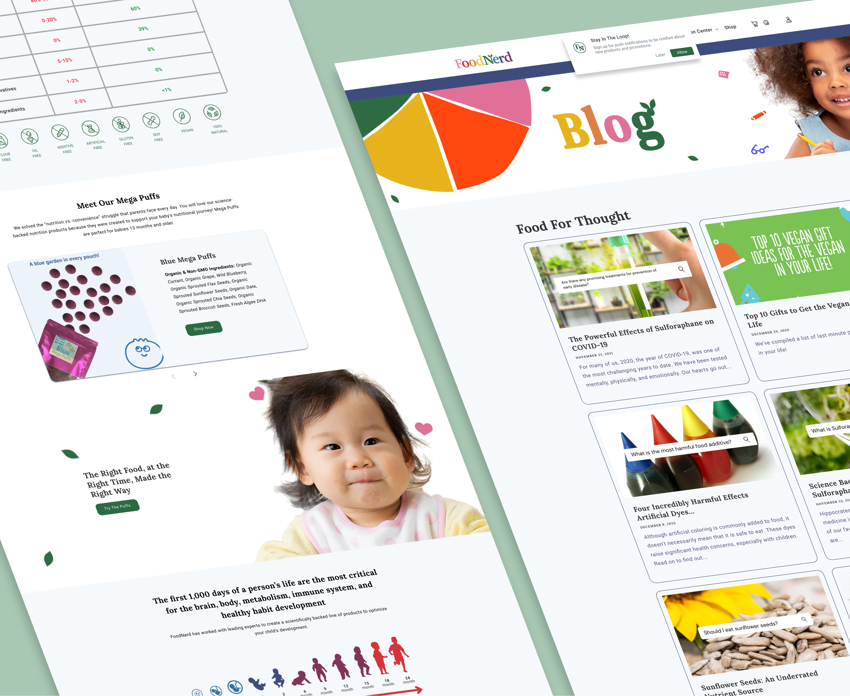 Foodnerd specializes in baby food crafted with a focus on epigenetics, supporting gut, brain, and habit development during the crucial first 1,000 days of life. The client required a web and e-commerce design that aligned with their evolving brand identity, communicated their unique value to potential investors, and appealed to new customers, particularly parents and nutrition experts.